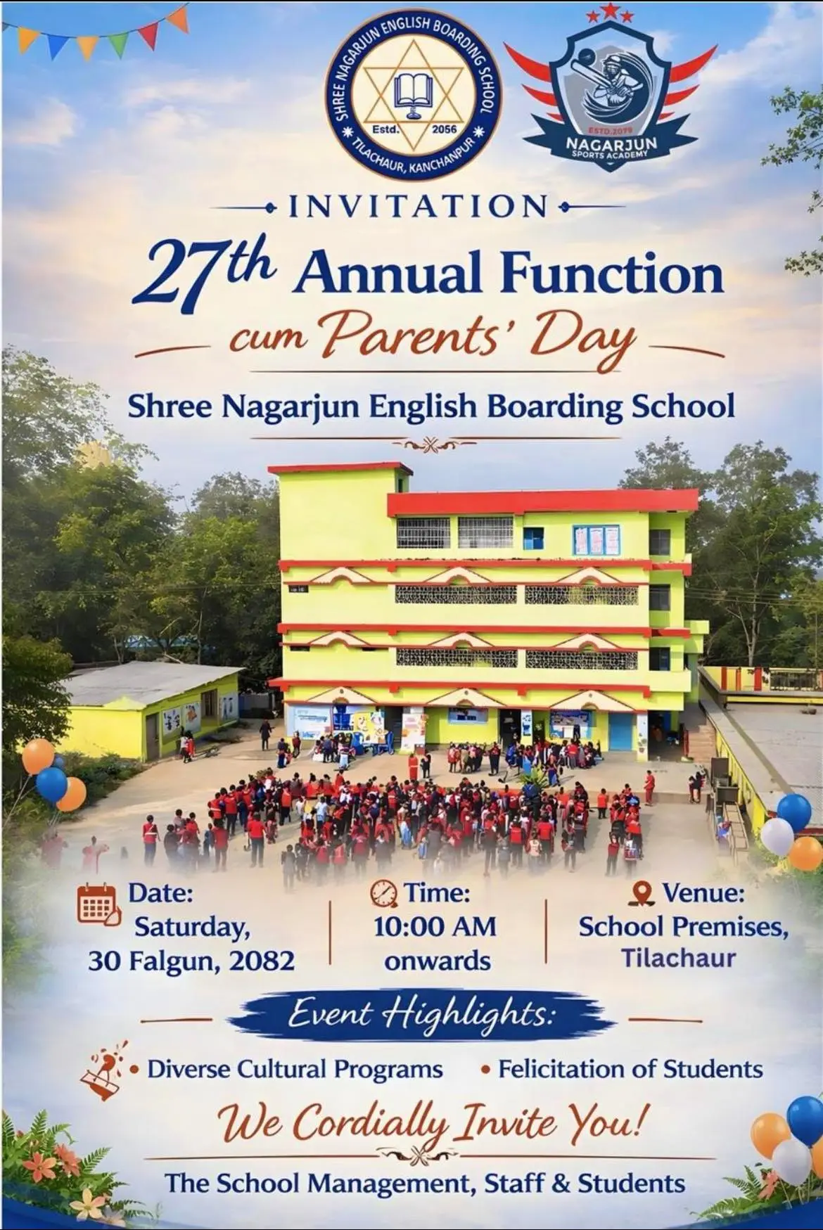 Shree Nagarjun English Boarding School, located at Tilachaur in Bheemdatt Municipality, serves families across Mahendranagar and surrounding communities with a nurturing, disciplined, and future-focused learning environment.